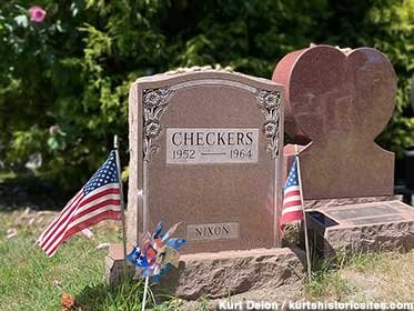 His (in)famous dog, Checkers, is buried in what is arguably the oldest pet cemetery in the US, Bideawee, established in my hometown of Wantagh in 1915 (when there was no town, and the only homes were a few farmhouses dotting the potato fields). In the mid-70s, I found the grave and—apologies to all dogs everywhere—I turned the little American flag by the gravestone upside down in the dirt.