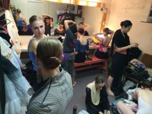 The glamor (not) and excitement of the backstage dressing room. (That's Victoria Harvey, who took me stage make-up shopping. Suzanne Haag taught me the magic.)