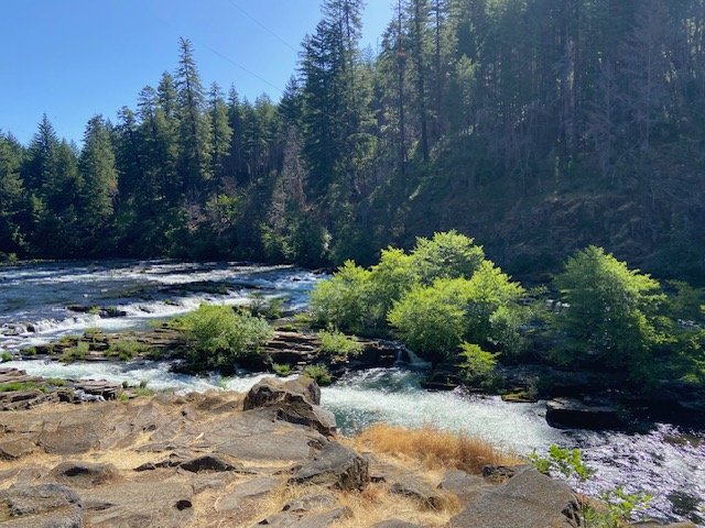 I read Mary Oliver's “Sometimes” sitting on a rock on the banks of the Umpqua last week. The river is so clear you can see the rocks beneath the surface. On my side of the river, the forest is lush with Doug fir, hemlock, incense cedar. On the other side, the Archie Creek Fire of 2020, which hopscotched the land and burned more than 130,000 acres, reduced the forest to blackened spears, an otherworldly landscape that has a chilling beauty to it. You can hear the river. There are rapids just a hundred yards away. I sat there for a good, long while. Emphasis on the good. And I also read this poem: