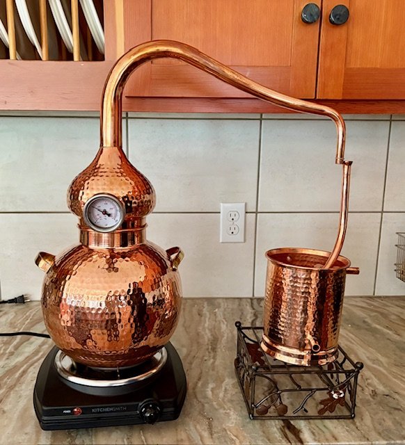 Announcing a new, cool hobby that one friend told me today brought me “even closer to witch status.” Which was a compliment. It’s creating essential oils through distillation using an Alembic copper still, apparatus that traces its origin back to Muslim alchemists of the 9th century. It looks like this: