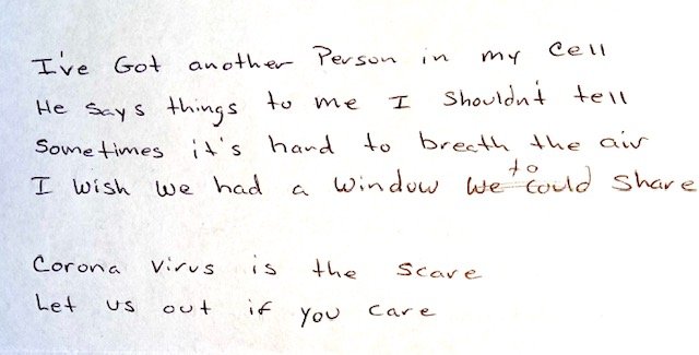 As of last night there were eight confirmed cases of covid-19 in Oregon prisons: three staff members at the Oregon State Penitentiary and three inmates and two staff members at Santiam Correctional Institution.Everyone knew this was coming. And no one expects this will be the end. It is the beginning. Prisons are, in the words of public health experts, “petri dishes.”On Monday, the Oregon Justice Resource Center along with two attorneys as co-counsel filed a class action suit against the Oregon Department of Corrections and Governor Kate Brown. The suit alleges that inmates' rights are being violated by the “willful and/or deliberately indifferent medical care provided to them.” The seven members of the class action are all older than 60 and/ or have chronic health concerns that put them at additional risk.This is from the Oregon Justice Resource Center’s announcement of the suit:The plaintiffs are concerned that COVID-19 poses a serious risk to the health of all who live and work in Oregon’s prisons. There are many reasons why incarcerated people and those who work with them may be especially vulnerable to outbreaks of infection, including living at close quarters to one another, unsanitary conditions, poor health, and the large numbers of people who cycle through the system. Prisons are not built to adequately withstand a global pandemic; ODOC is not equipped or resourced to handle a public health crisis of this magnitude.What’s happening inside? Here are three examples, according to first-hand information gathered by the OJRC:An inmate in one prison became “very ill” with fever, dry cough, lethargy. He was denied a COVID-19 test. He was quarantined but still required to take his meals with the general population.An inmate in another prison is housed in a dorm with 117 other women where the beds are three feet apart. Forty of the women have health conditions that put them at additional risk from COVID-19.An inmate at another prison is on the hazard clean-up crew and has received to training or protective gear other than gloves. The disinfectant he is required to use is not an EPA-registered disinfectant effective against the virus that causes COVID-19.Whatever is happening in our own stay at home/ mask up/ wash your hands lives, we might want to take a moment to think about the lives of the 2.3 million people incarcerated in American prisons and jails.*Excerpt from a poem written by "Ted Point," one of the men in my Lifers' Writers Group at Oregon State Penitentiary