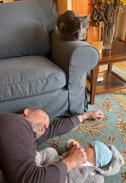 Most of the time, grief is a hum in the background, a soft sorrow, almost (in a way that surprises me) comforting, like the thrum of rain at night. Sometimes it comes to me as a longing, even a sweet longing, like that ache you feel when you hear Joni Mitchell singing "Both Sides Now."But occasionally it is a sharp pain.Most of these arrows to the heart are predictable: the first Thanksgiving without, the first Christmas without, the first birthday without, the first book launch without. The six-month mark. I know these are coming, and I prepare myself. I note the day on the calendar. I give myself a talking to. Maybe I read a Mary Oliver poem. Maybe I power up Blanton Heights. I make sure I’ve got gin, vermouth and Campari in the cupboard. And I handle it.It’s unexpected that gets me.Yesterday, sitting on the floor with Henry, I listen to him recite the names of all the people in his life, the names he now knows, the people he loves and trusts. Until recently, he was a listener. Now he is a talker. And so he points at me and says “Wowo,” which is me, Lolo. His “Ls” are not quite there yet. And he says Dada and Mama. And then he says Gamma, which is his other grandmother, and Papa, which is his grandfather.And then, bam, it hits me: He has no word for Tom. He has no name for his other grandfather. And some day, when people ask him about his family, he will say, “I never knew my father’s father. He died when I was just a baby.”I wonder what Henry would have called Tom. But I don’t wonder what kind of a grandfather Tom would have been. I know. He would have delighted in this child as he delighted in our children. He would have loved him unconditionally as he did our children. He would have read to him--with funny accents and quirky voices—sang songs, played the piano, planted pumpkins for him in the garden, alerted him to the birds swooping around the backyard feeder, occasionally bored him with scientific facts (known in our household as the reading from The Hager Codex), watched him, with an open heart, as this child learned about the world, as this child became a boy, a man. Tom would have been an extraordinary grandfather.And that’s the awful grinding pain of it. That he didn’t get to be one.