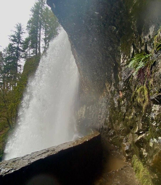 Image is mine: That invigorating, wet, slippery, awesome walk behind Lower South Falls (Silver Falls State Park).