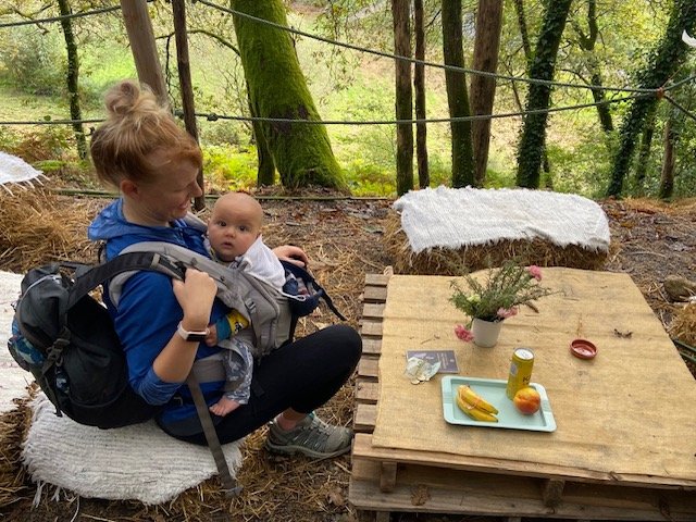 A year later, I met Amy on day four of the Camino Portuguese. I was settling into the bottom bunk at a beyond “rustic” albergue that used to be a convent. (Beyond rustic definition: metal bunkbeds, no privacy curtains, one bathroom for 15 women.) A youngish woman with a baby walked into the dorm room, and I thought: Oh, perfect, now in addition to the snorers and the creaky-in-the-middle-of-the-night bunkbeds, there will be a crying baby. But Sasha, the baby in question, turned out to be the happiest, calmest baby ever. Amy was a deeply caring but completely matter-of-fact mother who was—oh yeah, right—walking 200 miles with a 17-pound baby strapped to her front.