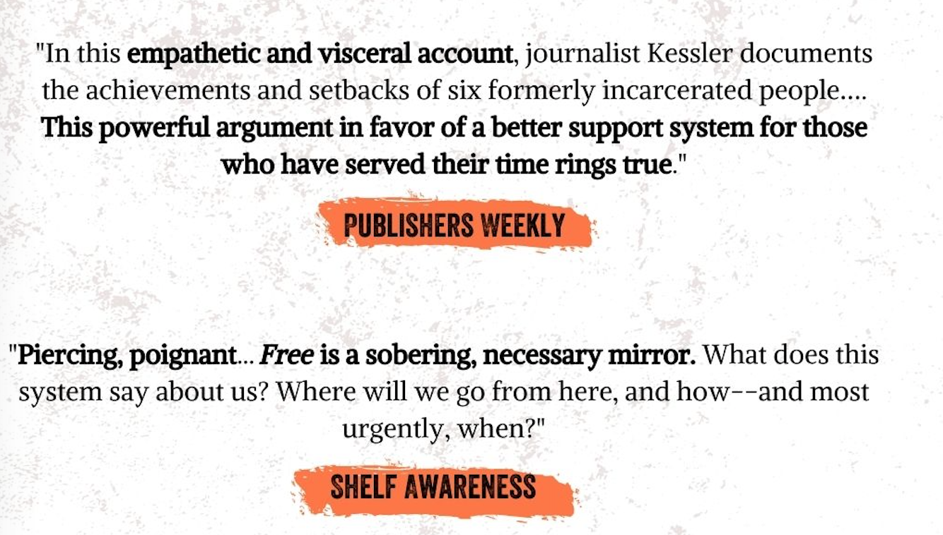 When I started going into prison to run a writers’ group for lifers, I wanted to help the men find their voices and tell their stories, and I also wanted to learn from them about the realities of incarcerated life, that hidden-from-view world inhabited by 2.3 million people in our country. As we talked about the art and craft of writing I kept suggesting books they could read that exemplified the power of nonfiction storytelling. None of those books were in the prison library.But to be a writer one has to read good writing, yes? And to prepare for freedom one has to be able to practice (and hold dear) intellectual freedom: the opportunity to read books that open new worlds; the chance to write with clarity and passion about the world one currently inhabits.During the three years the group met, I was able to bring in—volume by volume--quality books about writing techniques along with dozens and dozens of narrative nonfiction books culled from my own library and used bookstores. I had the extraordinary support of a prison staffer. The prison's furniture shop created a tall wooden cabinet to house the "Writers' Collection." One of the men volunteered to be the lending librarian. We bragged about it shamelessly. And they read voraciously.And now, thanks to a partnership between the publisher of my new book, FREE: Two Years, Six Lives and the Long Journey Home, and the nonprofit Chicago Books to Women in Prison, I get to be involved in helping to build prison libraries on a national scale.For every copy of FREE sold (it doesn’t matter from what retailer) between April 1 and May 27, Sourcebooks will donate a (different) book to Chicago Books to Women in Prison to distribute free of charge to state prisons in Arizona, California, Florida, Illinois, Indiana, Kentucky, Mississippi and Ohio, as well as all federal prisons.Their mission statement: "We are dedicated to offering the opportunity for self-empowerment, education and entertainment that reading provides."Because BOOKS CHANGE LIVES. (Which just happens to be the motto of my publisher.) And Sourcebooks walks the talk.FREE is about how people reclaim and remake (and reimagine) their lives after long-term incarceration. I hope the stories I was privileged to tell give realistic hope to those who will someday be free. I hope these stories help families and friends and communities understand how freedom can be simultaneously joyful and overwhelming. I hope these stories bring into focus what it takes to help these folks be successful. What we need to do.And now I get to hope a new hope: That with this partnership, my book, the sale of my book, will result in thousands of books donated to those behind bars. You can be part of this too.